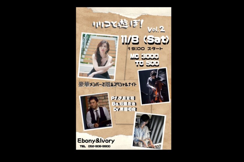 リリコとあそぼ その2 11月 8 Sat 2025 SpecialEvent Vo.リリコ Pf.伊原寛司 Ba.坂田慶治 Dr.黒田和良 Open18:00 Start19:00 MC3000円 TC500円 前のスケジュール 次のスケジュール