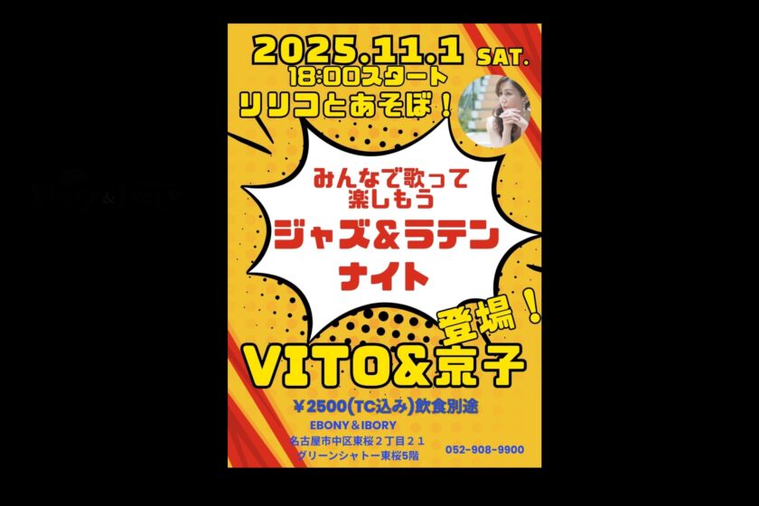 リリコとあそぼ ! with VITO & 京子 11月 1 Sat 2025 SpecialEvent ステージ参加もOKです! Open17:30 Start18:00 MC2500円 TC500円 前のスケジュール 次のスケジュール