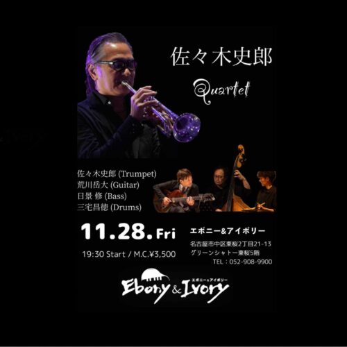 佐々木史郎カルテット 11月 28 Fri 2025 JazzSpecialEvent Tp.佐々木史郎 Gt.荒川岳大 Ba.日影修 Dr.三宅昌徳 Open18:30 Start19:30 MC3500円 TC500円 前のスケジュール 次のスケジュール