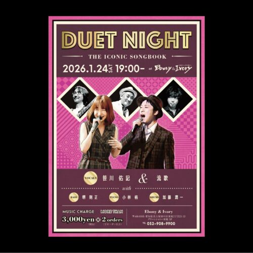 Vo.笹川佑記 Vo.流歌 Pf.小林格 Ba.堺則正 Dr.河原弘Start19:00MC3000円…