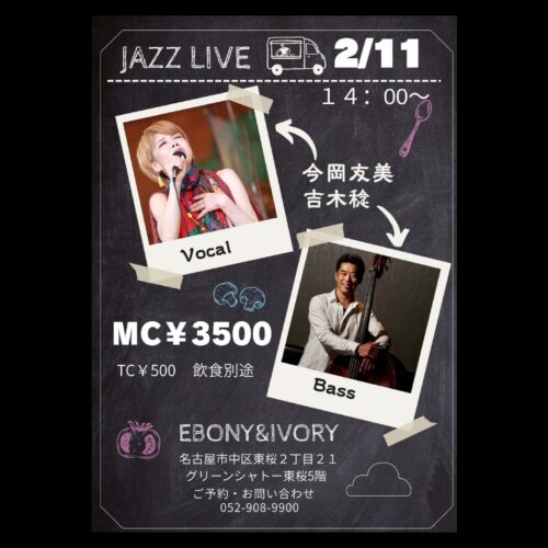 DUG伊藤 セッション 2月 3 Tue 2026 EventSession 月一恒例、ホストDUG伊藤のセッション ジャズ、ポップス、何でもござれ 歌、楽器、参加お待ちしております open18:30 start19:30 TC550円 MC2200円 前のスケジュール 次のスケジュール