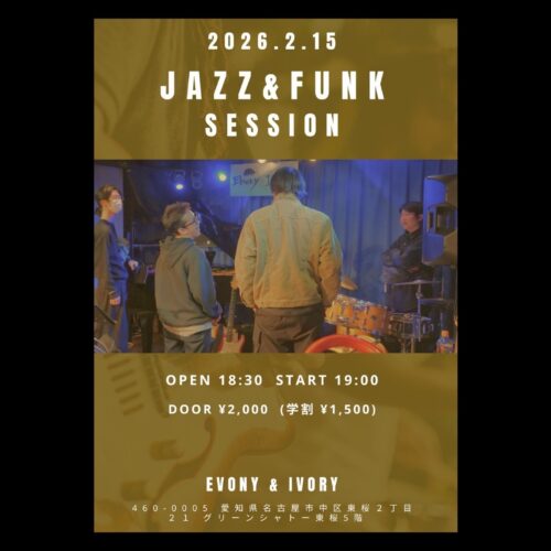 Jazz&Funk セッション 2月 15 Sun 2026 EventR&B/Soul/Funk/Others 若手ホストミュージシャンによる 新しいFUNKセッション 熱くなりたい人、お待ちしてます! Ba. 竹内宗大 Gt. Miguel Arroyo Pf. 伊原寛司 Dr. 宮瀬真樹 Open 18:30 / Start19:00 MC 1,500円/ TC 500円 前のスケジュール 次のスケジュール